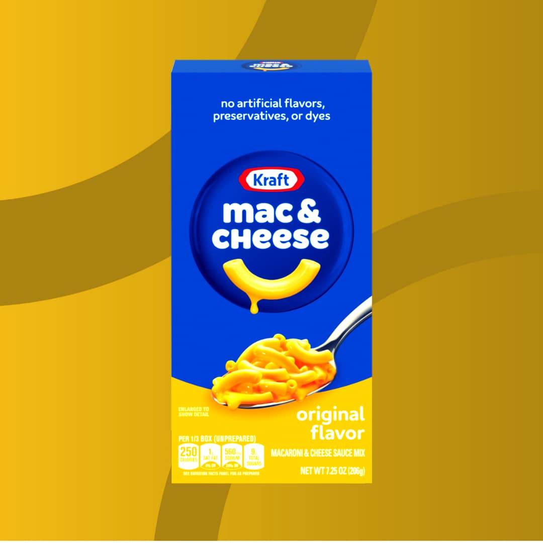 There’s nothing quite like the original! Enjoy a bowl of comforting Kraft Mac and Cheese in under 10 minutes. Our signature, creamy Kraft cheese and enriched macaroni come together to make a delicious meal with no artificial flavors, dyes or preservatives. That’s something worth smiling about.